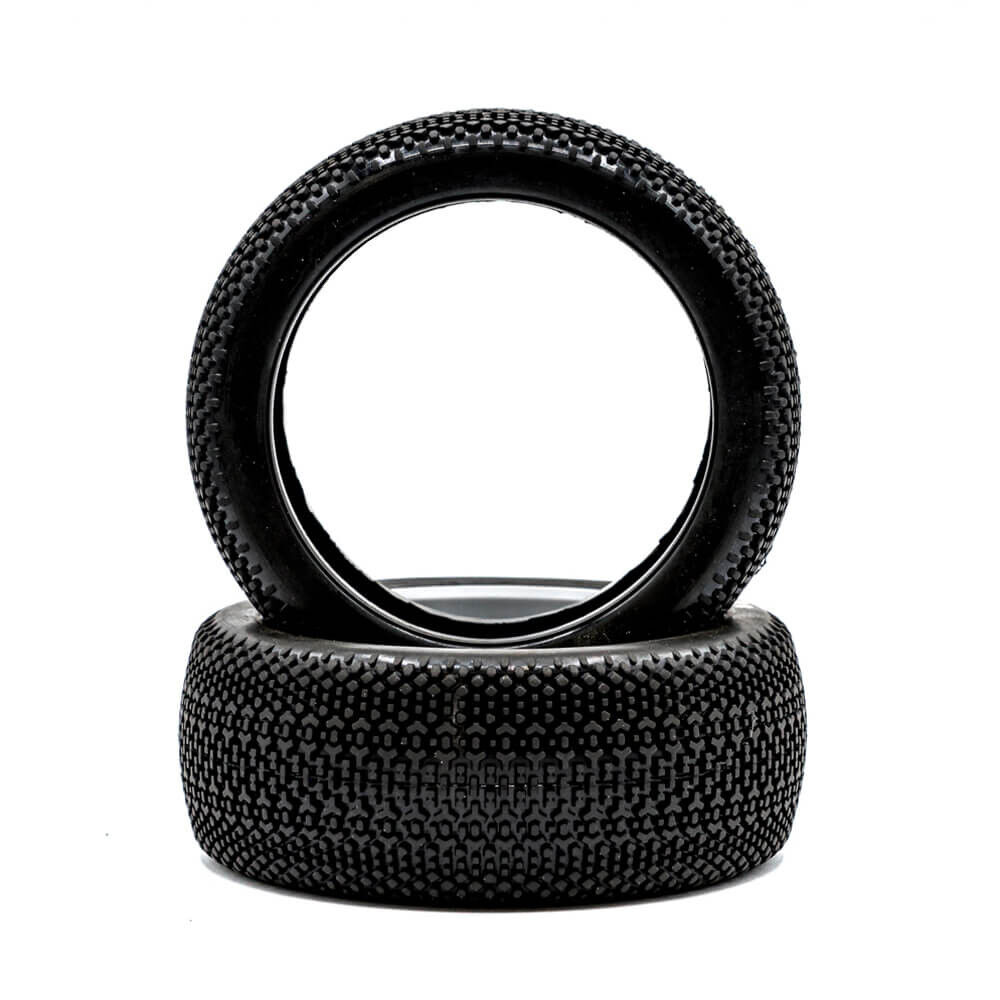 the raw speed rc triumph 1/8 off-road buggy tires are engineered for racers who want dependable performance across a variety of track conditions. Designed to fit industry-standard 1/8 buggy wheels, each set includes two closed-cell foam inserts that provide consistent support and help maintain tire shape during high-speed runs and long mains.